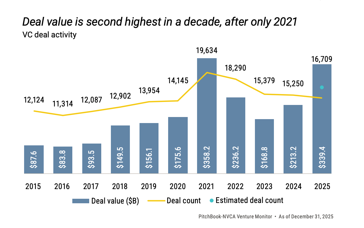STV Take: The $339.4B headline can look like proof that venture has fully recovered, but the distribution tells a different story. Nearly half of that capital went to a small group of AI infrastructure companies raising $100M+ rounds. Those rounds are the exception, not the norm, which makes it more important than ever for founders to clearly articulate who the customer is, what problem is being solved, and why now is the moment their business works in a way it couldnât before.