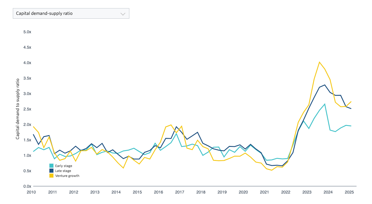 Pitchbook released their latest VC Dealmaking Indicator, reflecting the state of the market from the perspective of investors and startups. Not surprisingly, the market favors investors, which has been the case since 2023.
